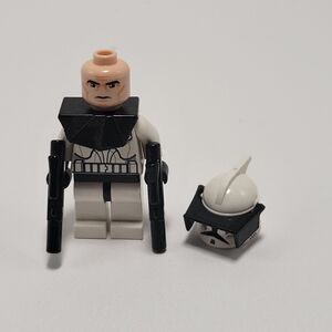 The product is a LEGO minifigure of a Clone Trooper Commander from the Star Wars series. It is designed to be compatible with other LEGO building sets. The minifigure features detailed design and is a part of the Star Wars character family. The packaging for this product is not specified, indicating that it may be sold individually without any additional packaging. LEGO enthusiasts and Star Wars fans alike may find this minifigure a valuable addition to their collections.