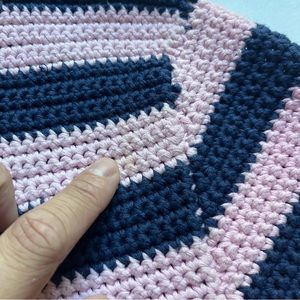 STAUD pink navy striped chunky knit crew neck short sleeve sweater top