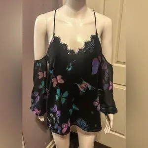 Step into a fairytale with this Express Rainbow Butterfly Blouse. ππ€ The flowy, off-the-shoulder design with delicate lace accents adds an ethereal touch, perfect for a fairycore dream or a chic festival look. ππΈ