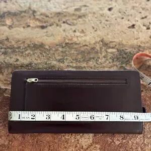 COACH brown long zip around leather wallet. Perfect for traveling will hold passport/tickets. Has zipper on back. 9 1/2” x 4 1/2”. Has initials EHP on bottom corner. No issues All sales final.