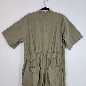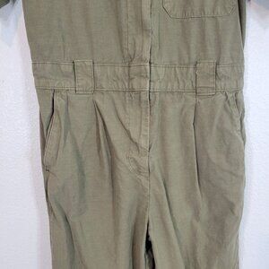 Everlane Women Size 12 Organic Cotton Jumpsuit Boiler Suit Green Short Sleeve