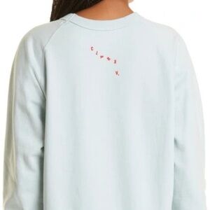 Clare V. Pale Blue Sweatshirt with Poppy Lips