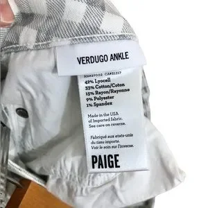 Paige Gray Gingham Verdugo Ankle Skinny Jean Size 31