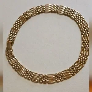 This elegant gold plated necklace adds a touch of sophistication to any outfit. Perfect for any occasion.