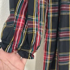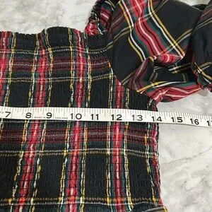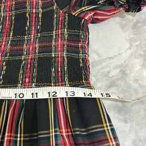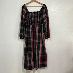 JCREW WOMENS PLAID SMOCKED COTTON POPLIN MIDI DRESS RED BLACK SZ MEDIUM
