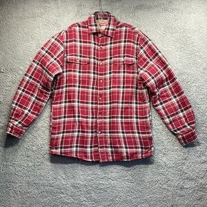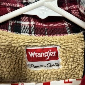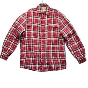Wrangler Shacket Plaid Heritage Print Men Small Red Black Lined Faux Fur Shepra