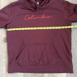 Columbia - Women’s L hoodie, burgundy with orange details. Good condition! Slight wear under the arms (see last photo). It’s warm! Other details and measurements in pictures. Open to bundling and offers.