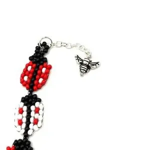 Hand Crafted Beaded Ladybug Bracelet with Bee Charm Red White and Black