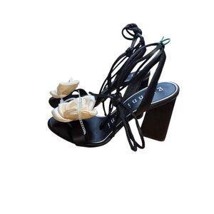 🌟 Gianni Bini Dakota Satin Flower Ankle Wrap Dress Sandals