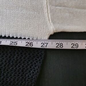 UK Brand Jawbreaker Oversized Sheer Knit Sweater Dress. It features a classic black and white color combo, soft knit construction, semi sheer design, solid and loose weaved pattern, a slouchy relaxed fit, long sleeves, crew neckline, and contrast paneling.