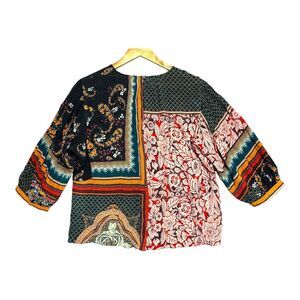 ANTHROPOLOGIE WOMENS BOHO BLOUSE SMALL MULTICOLOR BEADED SEQUIN FLORAL PRINT