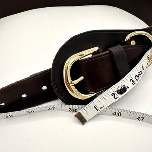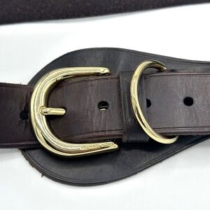 Michael Kors Brown Leather Belt Gold Buckle ~Womens Size Medium~ Equestrian Look