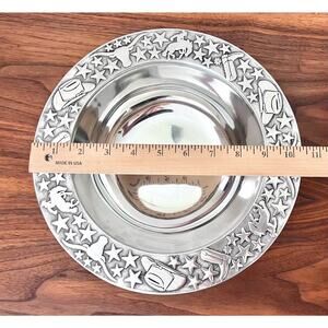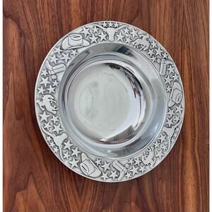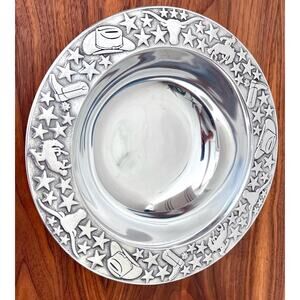 AC57(6)Wilton Armetale Large Longhorn Cowboy Barbed Wire. Western design around the border with Western Hat and Stars. Measures approximately 2 1/2” tall x 10 1/2” in diameter. Great condition-no dings or dents - a lil utensil surface scratches , a beautiful piece considering age. Designed and crafted by hand, Wilton Armetale Serveware products are as functional as they are beautiful, and made to last a lifetime. Formal to casual, stylish to rustic, each piece we craft is designed to capture the spirit of your life. Able to withstand temperatures up to 1000 degrees F, Perfect for the oven, stove or grill, foods will stays hotter longer. Wilton Armetale serveware pieces are also designed to help keep cold foods cold; simply place your favorite serving piece in the fridge before preparing salads, sides or appetizers. Made of Armetale metal, which is an aluminum-based alloy metal, that is 100% recycled, and food-safe. This piece will not rust, break, crack, or chip under normal usage.