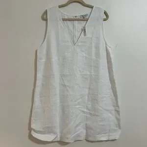 Madewell The Ariana V-Neck Mini Dress Linen White Sleeveless Size XXL