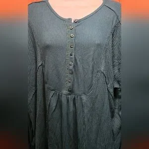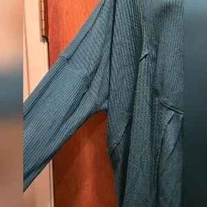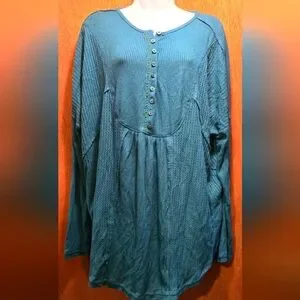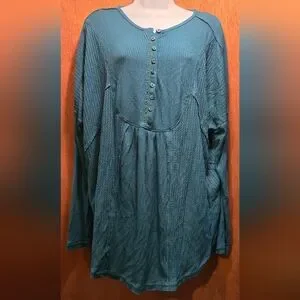 Free People women's green/teal Button-Up waffle Top szM