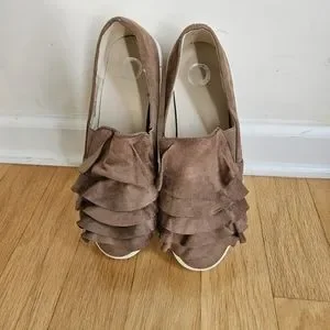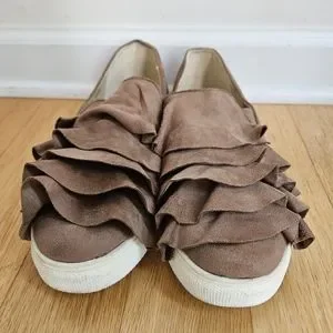 Suede Ruffle Sneakers Tan/Brown Size 9