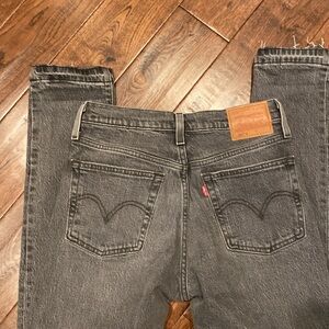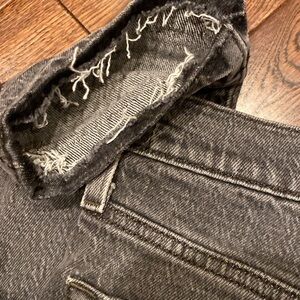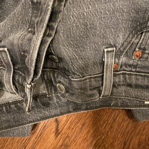 Light wash black Levi’s Skinny 501 25x32. Button fly. Hem has been undone for raw/distressed look. Excellent condition overall.