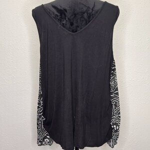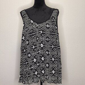 Love On A Hanger Pleated Black & White Aztec Print Sleeveless Blouse - 1X