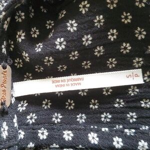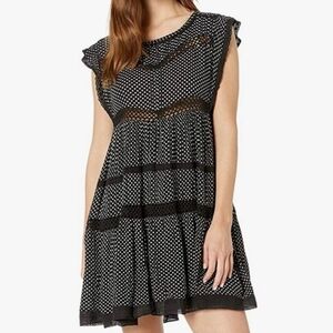 Free People Retro Kitty Crochet Trim Black White Floral Boho Dress Size Small