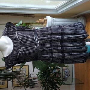 Super cute black and white small floral print Crochet trim Retro Kitty Dress oversized Size Small in great condition. Armpit to armpit laying down flat it measures approximately 22 inches and it is 34 inches long.