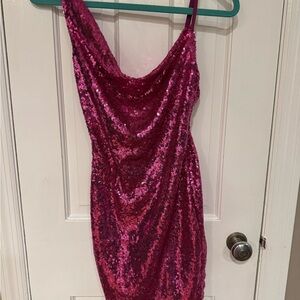 New with tags pink sequin asymmetrical dress by Hello Molly size XS