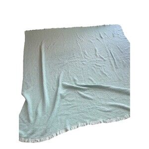 Aqua Thermal Blanket Vintage Waffle Weave Teal Nylon Trim 78”x84” Vintage