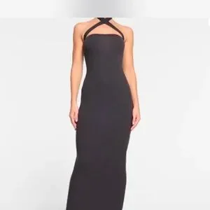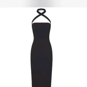 This elegant black halter dress is perfect for any occasion. Its sleek design offers a sophisticated look.