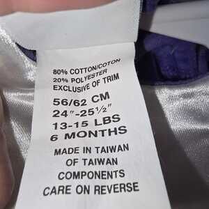 Vintage Baby Velour Romper Size 6M Purple Lace Collar Little Me