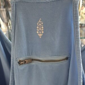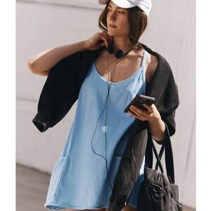Features: Soft fabrication, lightweight design, scoop-neckline, thin shoulder straps, racerback detail with zippered pocket, oversized patch pockets at front, lined interior with shorts piecing at bottom