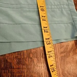 Athleta 4" Hiking Shorts. Blue. Tab, Hook and Zipper Fly. Drawstring Waist Detail. Front and Back Zipper Pockets. Lightweight. 86% Polyester 14% Spandex. Great Preowned Condition. Size 12. Flat Lay Measurements: Waist 18" Rise 10" Inseam 4" Overall Length 13" (waist to hem)