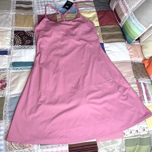 NWT Everyday Softlyzero™ Plush Backless 2-in-1 Flare Size large, Activity Dress-Wannabe-Longer Length & Adjustable Straps featuring pocketed shorts see pictures for measurements