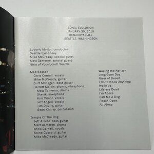 This is a rare Mad Season and Seattle Symphony CD titled Sonic Evolution. The CD is from 2015 and has been tested and plays through flawlessly and excellently. The CD is overall in Good condition with a few flaws/ The corners of the case have a few light white edge wear marks. The back top right corner also has a very small line in the paper on the top edge. The disc also has some extremely light marks on it. I took them from a few different angles, so you can see them as best as you can, but they are light, and don't affect play at all. Other than that, everything is in great shape and it comes with the original booklet. This comes from a smoke free & pet free home & will be packaged & shipped with great care.