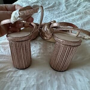 LOEFFLER RANDALL Camellia Dark Rose Gold Pleated Knot Bow Sandal NIB Size 10