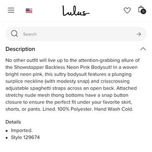 LuLus - SEXY Backless Neon Pink Bodysuit - S