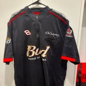 Vintage XL Dale Jr. Nascar zip up shirt from the Budweiser days. In great condition, beautiful embroidery and patches, front pocket, Budweiser embroidery on the shoulders and embroidered sleeves details. A great piece that you may not find again, so get it now.