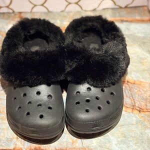 Crocs Mammoth Faux Fur Lined Clogs Shoes Black Slip On