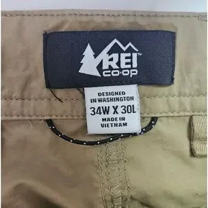 REI Coop Pants Men 34x30 Brown Outdoors Hiking Camping Roll Tab Snap Leg Relaxed