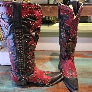 red and black heavily embellished ladies boots by double d ranch..worn once size 8b med.