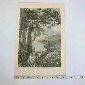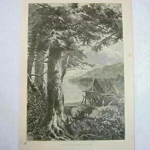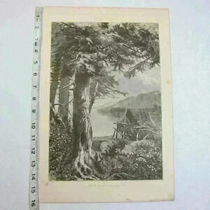 Art Print Hemlock Trees Lake Otsego New York Nature John A. Hows Antique 1874