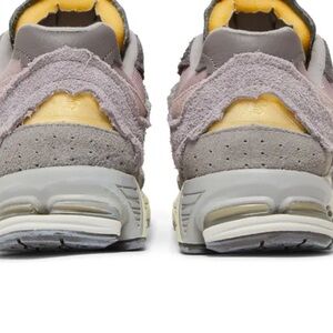 Trendy New Balance 2002R sneakers. Features a distinctive design with yellow and gray accents. Ideal for everyday style.