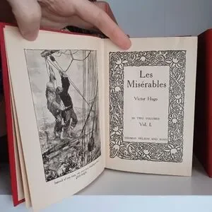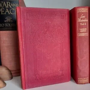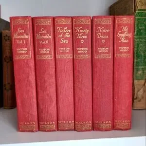 Set of classic Victor Hugo books. Elegant red covers with gold lettering. Perfect for collectors.