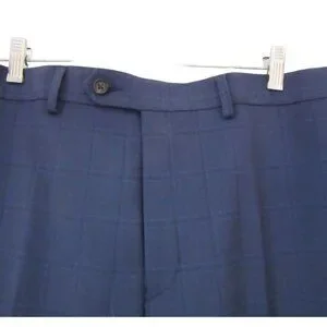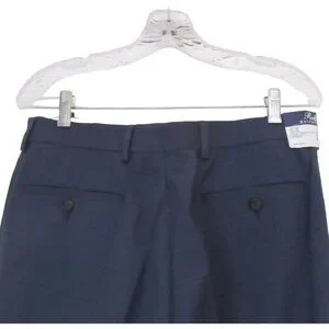 New with tags, men's Ralph Lauren pants. Zipper in the front with a metal hook and button. Slash pocket is found on the front on each side. 2 pockets with buttons are found on the back. The pants are a navy blue with black pin stripes. Please see all the photos as the colors may vary. Made of 80 percent polyester, 18 percent rayon and 2 percent spandex. Machine washable pants in size 34/32. Waist 34" and inseam 32".
