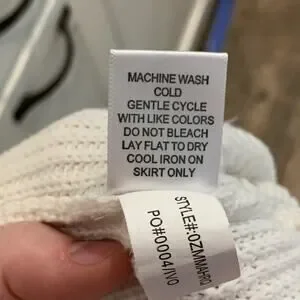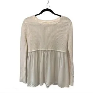 Off white self esteem sweater with knit on top and flowing rayon bottom.