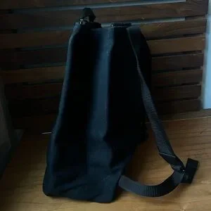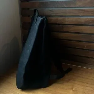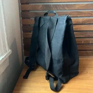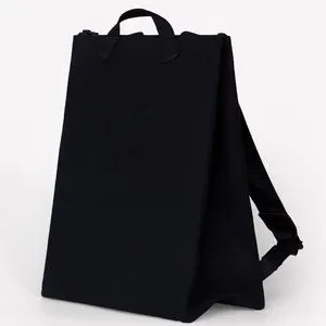 A-pack heavy duty waxed cotton canvas backpack. Folded shape that can collapse flat or exapand. Beautiful high quality construction. Made by Maharam, designed by Leon Ransmeier