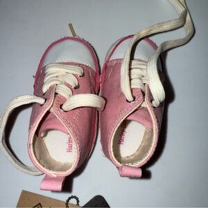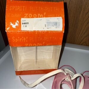 Adorable Harley-Davidson sneakers for kids in a charming pink color. Size 1 and never worn. There is some light brown discoloration from sitting in packaging in a few spots, please see photos. Happy to provide additionalphotos if requested.