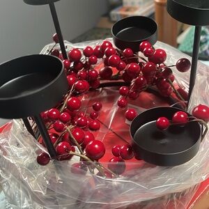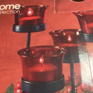 Brand new never used. Only opened for photos. JcPenny Home Collection red tea light candle set. Contains 6 tea lights, the glass votives, and the decorative centerpiece. Great for your holiday display 🎄