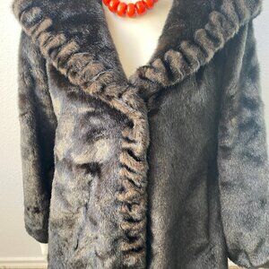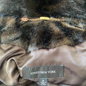Jones New York Women’s Full Length Faux Fur Long Sleeve Pockets hooded Coat Sz M