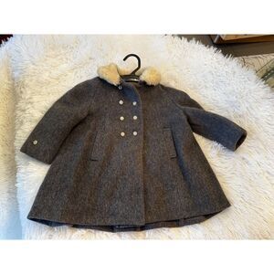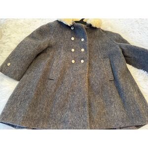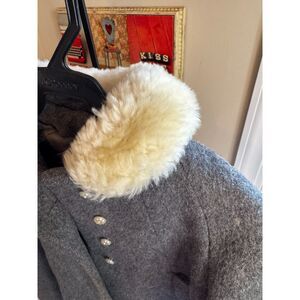 This is absolutely gorgeous; it is a little wool girl's coat - there are no holes or stains; a slight musty odor - could be professionally dry cleaned by the buyer; measures 14" across the chest, 16" from shoulder to hem; no indication of size; the name is filled out on the inside tag. non smoking home; will ship within 24 hours of payment.
