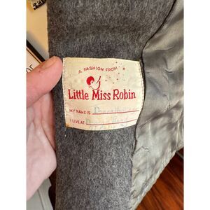Stunning vintage 1950's girls wool coat Little Miss Robin grey coat back pleats