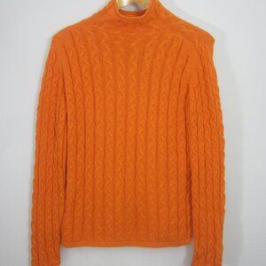 Unbranded Womens L Orange Peruvian Pima Cotton LS Cable Knit Mock Neck Sweater